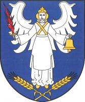 V modrém štítě stříbrný archanděl Michael, se zlatými vlasy, čelenkou s křížkem, překříženou štolou na prsou a střevíci, držící v pravici meč se zlatým jílcem a s čepelí v podobě červeného plamene, v levici zlatý zvon. V patě štítu dva vyrůstající zkřížené zlaté obilné klasy, každý s odkloněným listem.