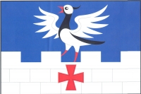 List tvoří dva vodorovné pruhy, modrý a zubatý kvádrovaný bílý, v poměru 9 : 7. V modrém pruhu vzlétající čejka s červenou zbrojí, v bílém se čtyřmi zuby a třemi mezerami hlubokými polovinu šířky zubu červený tlapatý kříž. Poměr šířky k délce listu je 2 : 3.