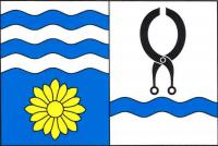 List tvoří v žerďové polovině šest vodorovných pruhů, bílý, vlnitý modrý, vlnitý bílý, vlnitý modrý, vlnitý bílý a zvlněný modrý se žlutým květem hlaváčku jarního, v poměru 1 : 1 : 1 : 1 : 1 : 5. Ve vlající polovině tři vodorovné pruhy, bílý se vztyčenými černými kamenickými kleštěmi, vlnitý modrý a zvlněný bílý, v poměru 7 : 1 : 2. Poměr šířky k délce listu je 2 : 3.