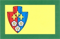 Žlutý list se zeleným lemem širokým osminu šířky listu. V žerďové polovině žlutého pole čelně postavená červeno-modře polcená radlice, v ní tři (1, 2) žluté lilie, pod nimi tři (2, 1) bílé růže se žlutými semeníky.Poměr šířky k délce listu je 2 : 3.