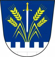 Modrý štít se stříbrnou kvádrovanou hradbou v patě, z níž vyrůstají čtyři odkloněné zlaté obilné klasy, každý s listem. Mezi klasy postavený stříbrný meč se zlatým jílcem.