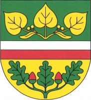 Stříbrno-červeně děleným břevnem zeleno-zlatě dělený štít. Nahoře tři vztyčené zlaté lipové listy na spojených řapících, krajní odkloněné s listenem a plody. Dole tři vztyčené zelené dubové listy na spojených řapících, mezi nimi po červeném žaludu.