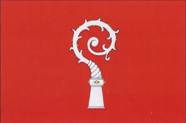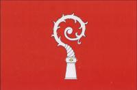 Červený list s bílou hlavicí berly ze znaku. Poměr šířky k délce listu je 2 : 3.