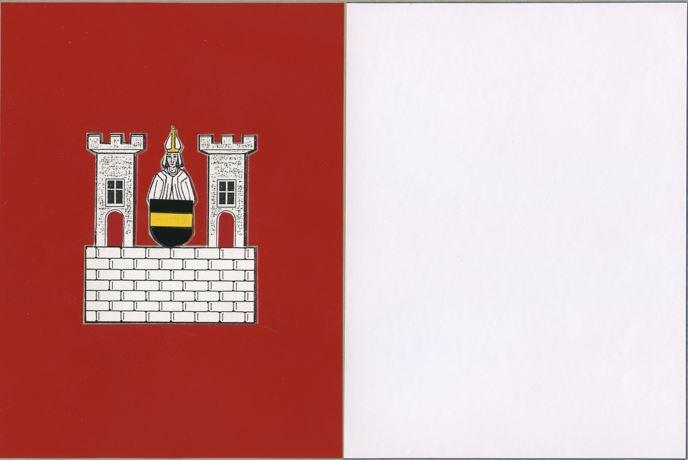 List tvoří červené žerďové a bílé vlající pole. V červeném poli bílý obdélníkový emblém se zdí, dvěma věžemi a figurou biskupa za černým štítkem se žlutým břevnem z městského znaku. Šířka emblému se rovná 1/4 délky listu. Poměr šířky k délce listu je 2:3.