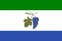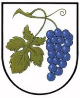 Ve stříbrném štítě na zeleném stonku s listem modrý hrozen.