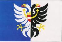 List tvoří dva svislé pruhy, modrý a bílý. Na modrém poli bílá půlorlice se žlutou zbrojí a perisoniem a korunovaným červeným štítkem s bílým břevnem. Na bílém poli černá půlorlice se žlutou zbrojí a perisoniem. Poměr šířky k délce listu je 2:3.