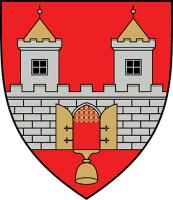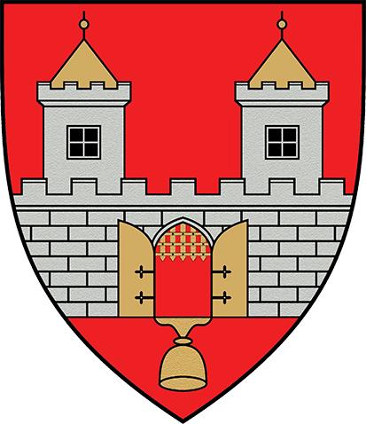 V červeném štítě stříbrná kvádrovaná hradba o sedmi stínkách, volná a do krajů, s prázdnou branou s otevřenými vraty a vytaženou mříží, vše zlaté. Pod branou dolů obrácený zlatý kalich. Z hradby vynikají dvě stříbrné věže s cimbuřím o čtyřech stínkách, každá s černým oknem, a zlatou stanovou střechou zakončenou makovicí.