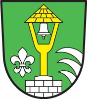 V zeleném štítě na stříbrném kvádrovaném podstavci zlatá vidlicová zvonička s jehlancovou stříškou se stříbrným zvonem. Zvoničku dole provází vpravo lilie a vlevo tři vlčí zuby vynikající z levého okraje štítu, vše stříbrné.