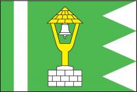 Zelený list s bílým svislým pruhem vycházejícím z druhé dvanáctiny horního a dolního okraje listu, uprostřed listu na bílém kvádrovaném podstavci volná žlutá vidlicová zvonička s jehlancovou stříškou a bílým zvonem. Na vlajícím okraji listu tři bílé vlající klíny s vrcholy ve třech čtvrtinách délky listu. Poměr šířky k délce listu je 2 : 3.