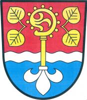 V modro-červeně stříbrným vlnitým břevnem děleném štítě zlatá berla dole zakončená polovinou přepásané stříbrné lilie, s hlavicí provázenou odvrácenými zlatými lipovými dvojlisty.