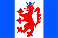 Modro-stříbrně polcený štít vpravo zlatý, dolů obrácený klíč, křížem podložený stříbrným mečem se zlatou rukojetí a záštitou, vlevo červený, modře korunovaný lev s modrou zbrojí a červeným jazykem.