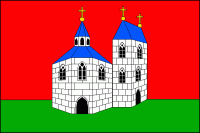 List tvoří dva vodorovné pruhy, červený a zelený, v poměru 3:1. Uprostřed listu bílý polygonální kostel s vchodem a oknem v průčelí, dvěma okny v bočních zdech, stanovou střechou s polygonální věžičkou se stanovou střechou. Ve vlající polovině přiléhá ke kostelní zdi hranolová věž, v průčelí s vchodem a dvěma okny nad sebou, v boční zdi dvěma okny nad sebou a sedlovou střechou. Stavba je bílá kvádrovaná, černé gotické vchody a gotická okna s kružbami a pruhy, střechy modré se žlutými makovicemi a křížky. Poměr šířky k délce listu je 2:3.