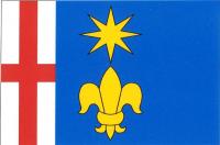 Ve stříbrno-modře polceném štítě vpravo červený heroldský kříž, vlevo osmihrotá hvězda nad lilií, obojí zlaté.