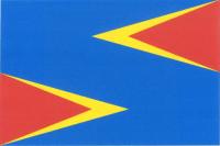 Modrý list. Z horní poloviny vlajícího okraje listu vychází červený klín s vrcholem v sedmé dvanáctině délky listu, k němuž přiléhá žlutá hrotitá krokev s vrcholem v páté dvanáctině délky listu. Z dolní poloviny žerďového okraje listu vychází červený klín s vrcholem v páté dvanáctině délky listu, k němuž přiléhá žlutá hrotitá krokev s vrcholem v sedmé dvanáctině délky listu. Poměr šířky k délce listu je 2 : 3.