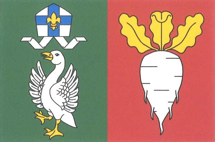 List tvoří dva svislé pruhy, zelený a červený. V zeleném vykračující bílá rozkřídlená husa se žlutou zbrojí a jazykem převýšená bílou mitrou s fimbriemi, v ní modrý středový kříž se žlutou lilií. V červeném pruhu bílá cukrová řepa se třemi žlutými listy. Poměr šířky k délce listu je 2 : 3.