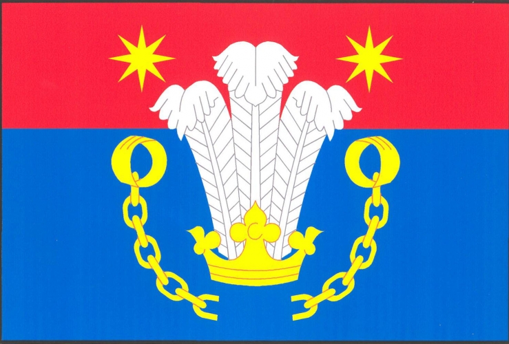 List tvoří dva vodorovné pruhy, červený a modrý v poměru 3 : 5. Uprostřed tři bílá pštrosí pera vyrůstající ze žluté koruny, provázená v červeném pruhu dvěma žlutými osmicípými hvězdami a v modrém pruhu do oblouku dole přeťatými žlutými pouty s okovy nahoře. Poměr šířky k délce listuje 2 : 3.