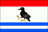 Ve stříbrném štítě s červenou hlavou a modrou patou se stříbrným břevnem černá vykračující vrána se zlatými pařáty.