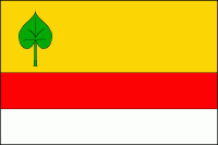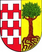 Polcený štít, pravá polovina pětkrát stříbrno-červeně dělená cimbuřovým řezem v levé zlaté polovině vykořeněná lípa přirozené barvy.