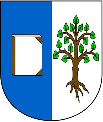 Modro-stříbrně polcený štít. V pravém poli stříbrná postavená zavřená kniha, v levém poli vykořeněná lípa přirozených barev.