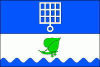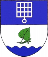 V modro-stříbrně děleném štítě nahoře vztyčený stříbrný rošt, dole nad modrou vlnitou patou šikmo vztyčený zelený lipový list s plodenstvím.