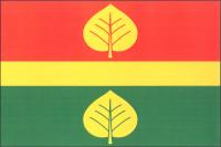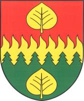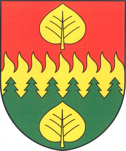 Červeno-zlatě plamenným řezem dělený štít se zvýšenou zelenou patou oddělenou smrkovým řezem. Nahoře a v patě vztyčený zlatý lipový list.