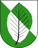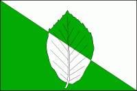 Ve stříbrno-zeleně kosmo děleném štítě vztyčený bukový list opačných barev.