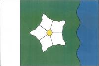 Stříbrný štít se zvýšeným zeleným vrchem nad modrou vlnitou patou. Ve vrchu stříbrný bramborový květ se zlatým středem.
