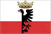 List tvoří dva vodorovné pruhy, bílý a červený, v poměru 5 : 3. Ve střední části listu půl černé orlice s celou hlavou s červeným jazykem otočenou k žerďovému a křídlem k vlajícímu okraji listu. Nad ní žlutá koruna. Poměr šířky k délce listu je 2 : 3.
