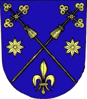 V modrém štítě dva zkřížené procesní kříže, provázené po stranách dvěma osmihrotými hvězdami a dole lilií, vše zlaté.